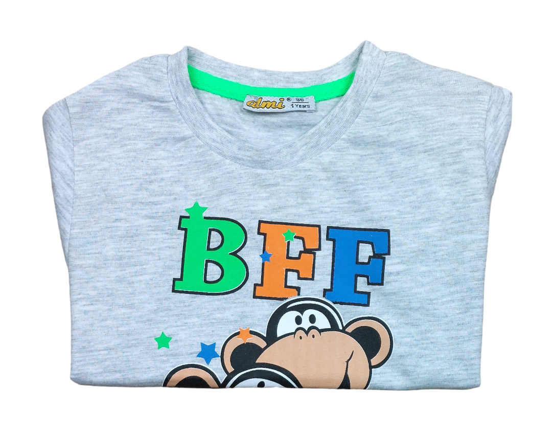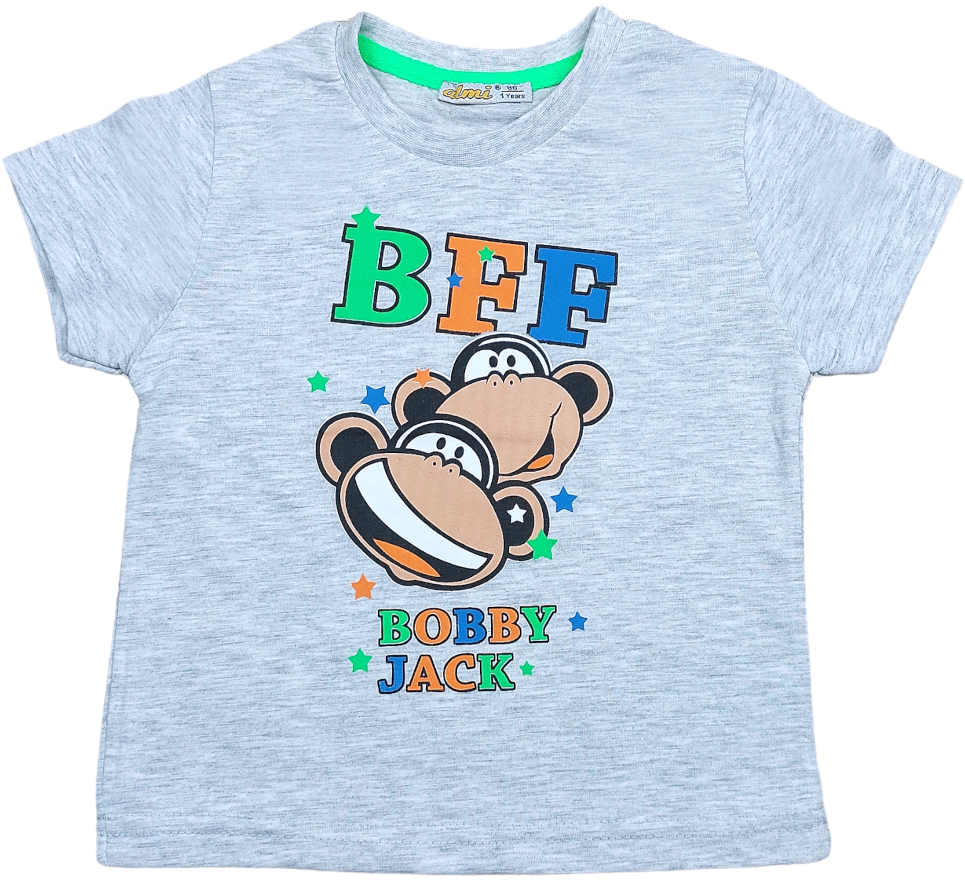 KOSZULKA DZIEWCZĘCA KRÓTKI RĘKAW SZARA - MAŁPKA