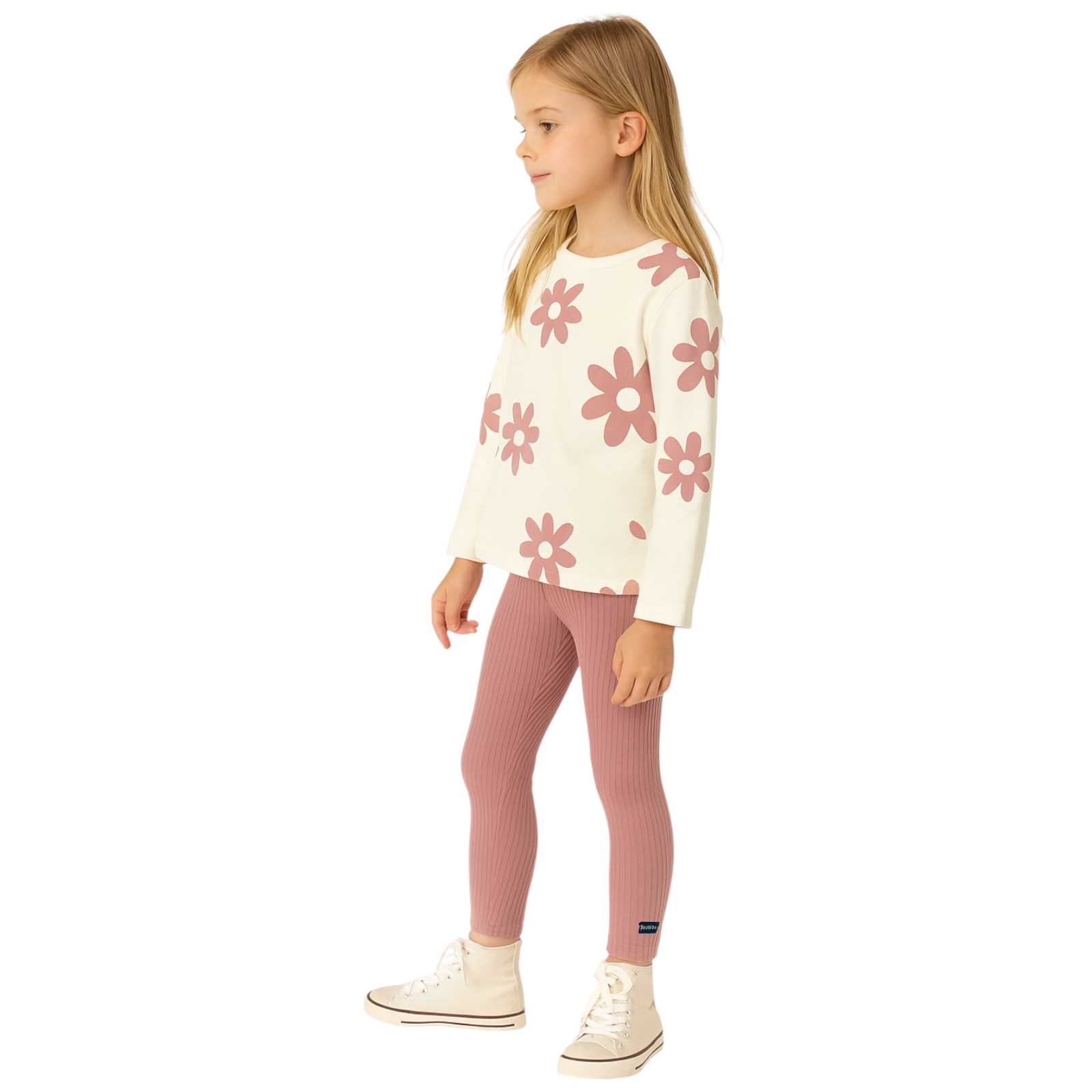 Komplet legginsy pudrowe i bluzeczka 4/9 lat - Kwiaty