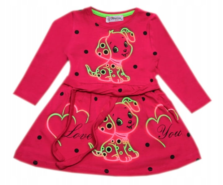 Sukienka dziewczęca bawełniana 86 cm neonowa - Pieski
