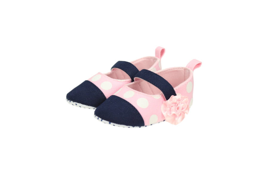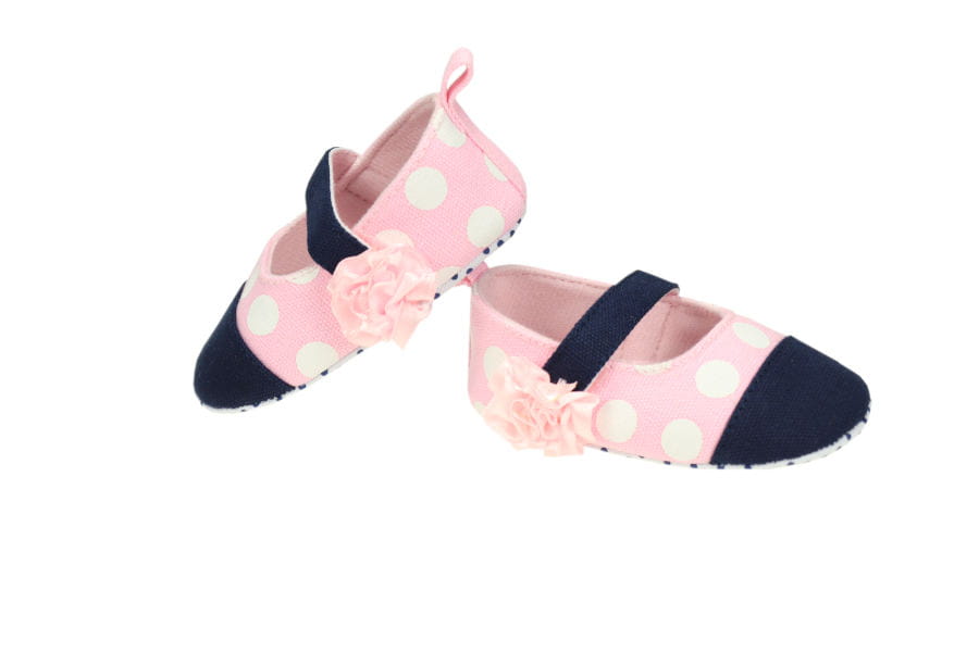Buciki dziewczęce balerinki różowe - kropeczki z kwiatuszkiem