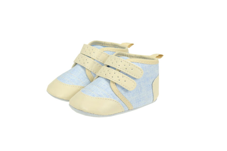 Buciki niemowlęce dla chłopca niebiesko beżowe - na rzepy