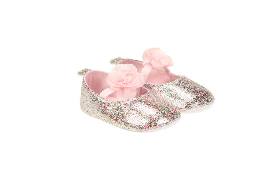 Buciki niemowlęce dla dziewczynki balerinki - z kwiatuszkiem