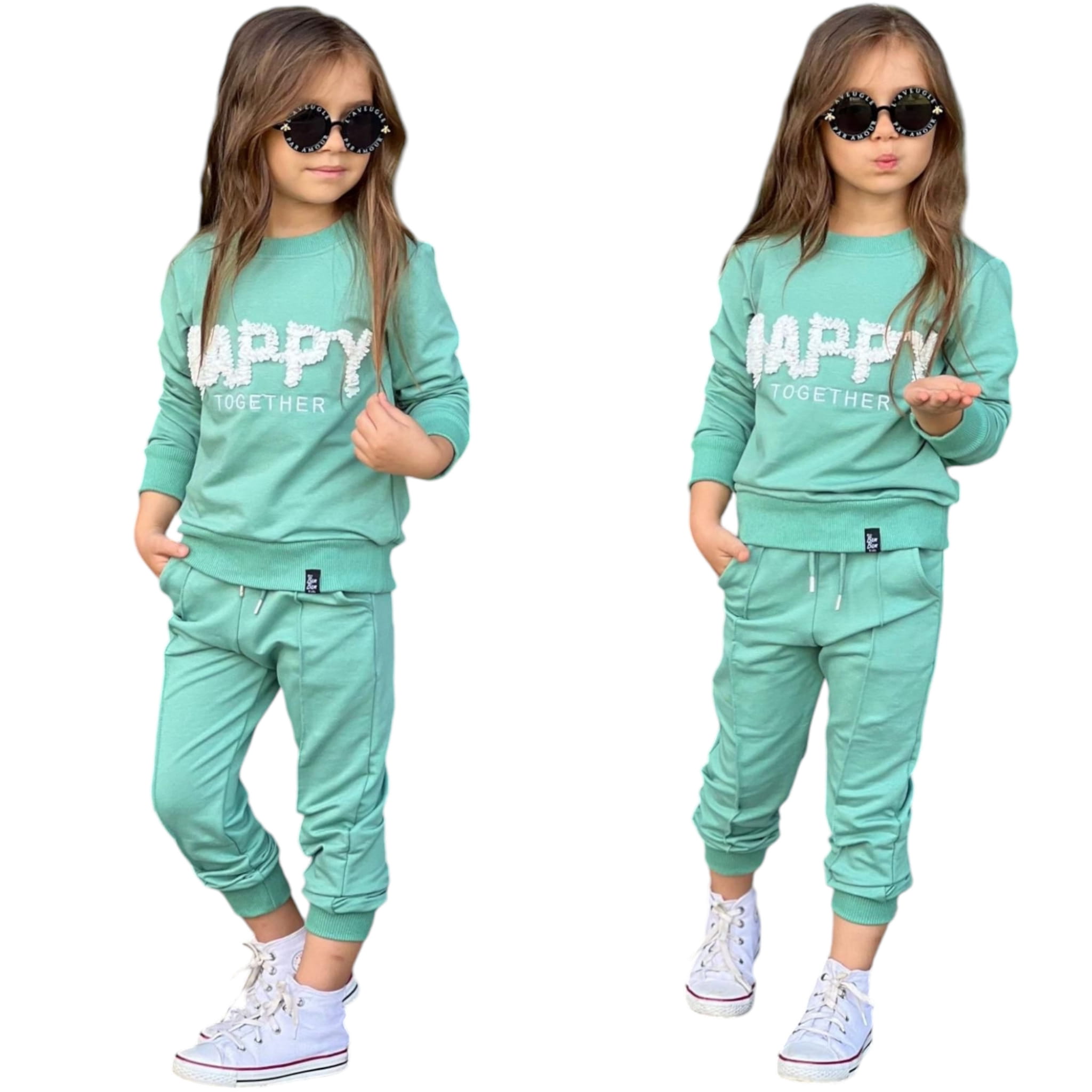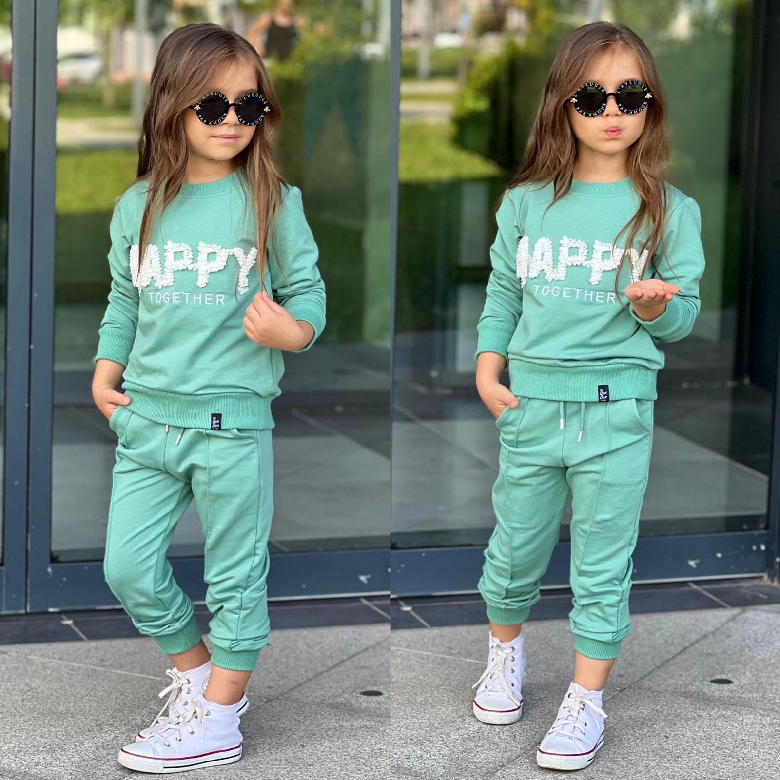 DRESY DLA DZIEWCZYNKI SPODNIE BLUZA Z NAPISEM - HAPPY TOGETHER