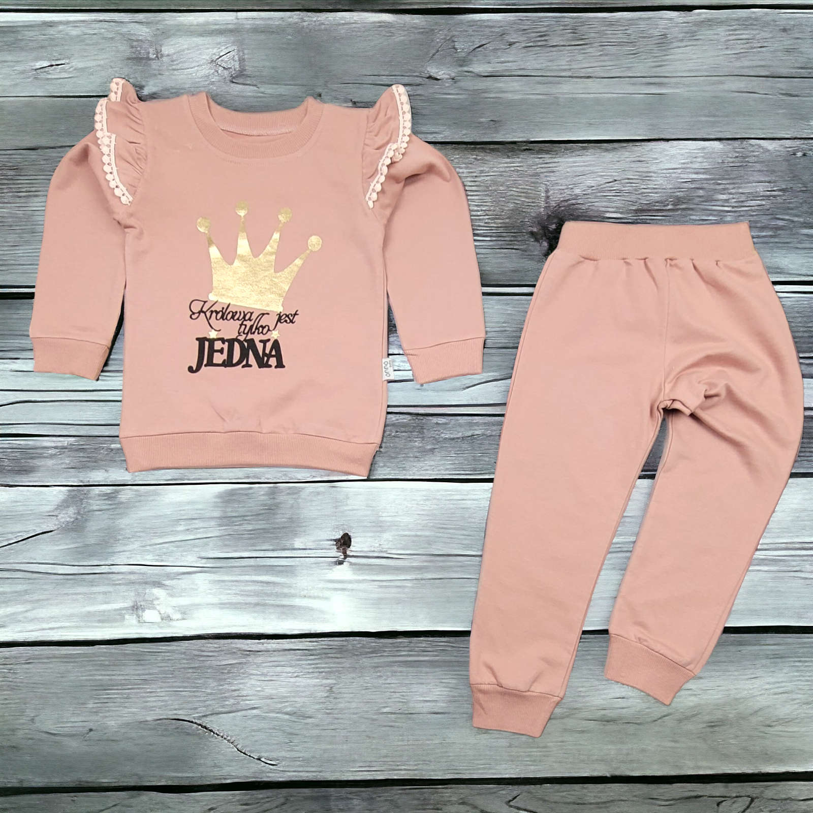 WYGODNY KOMPLET DRESOWY DLA DZIEWCZYNKI Z NAPISEM KRÓLOWA JEST TYLKO JEDNA