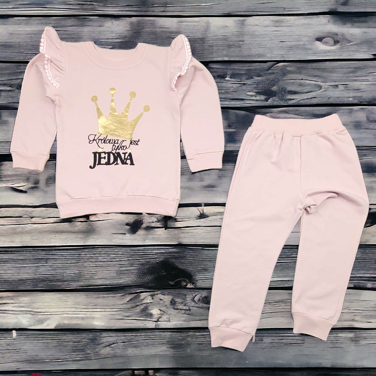 WYGODNY KOMPLET DRESOWY DLA DZIEWCZYNKI Z NAPISEM KRÓLOWA JEST TYLKO JEDNA