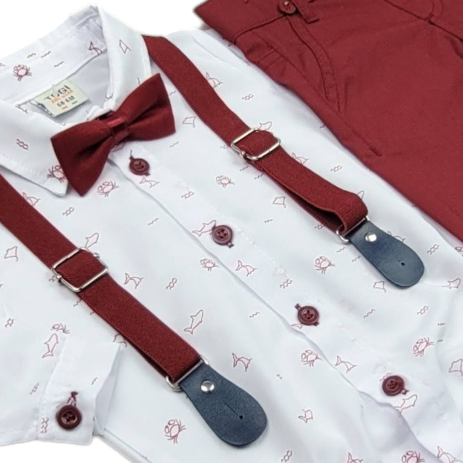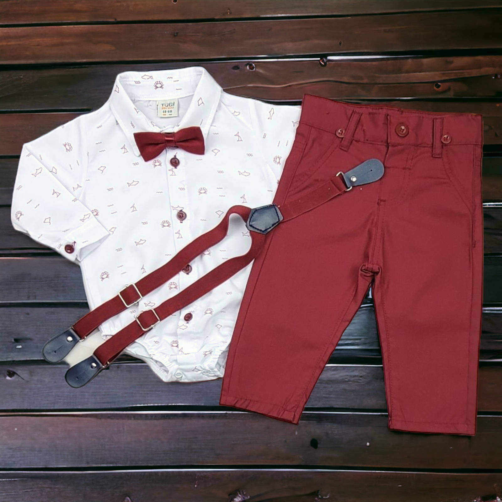 * Wygodny komplet na ważne wyjścia - składa się z koszulobody spodni, szelek i muszki