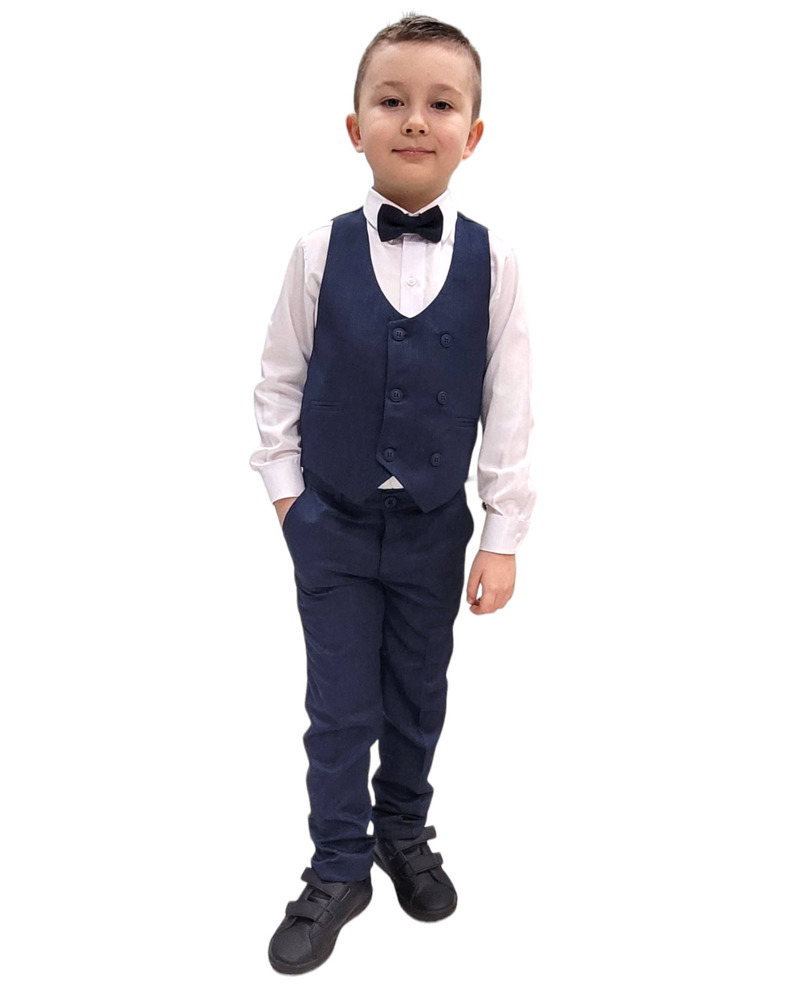 Garnitur elegancki z kamizelką 110/152 cm - Granatowy