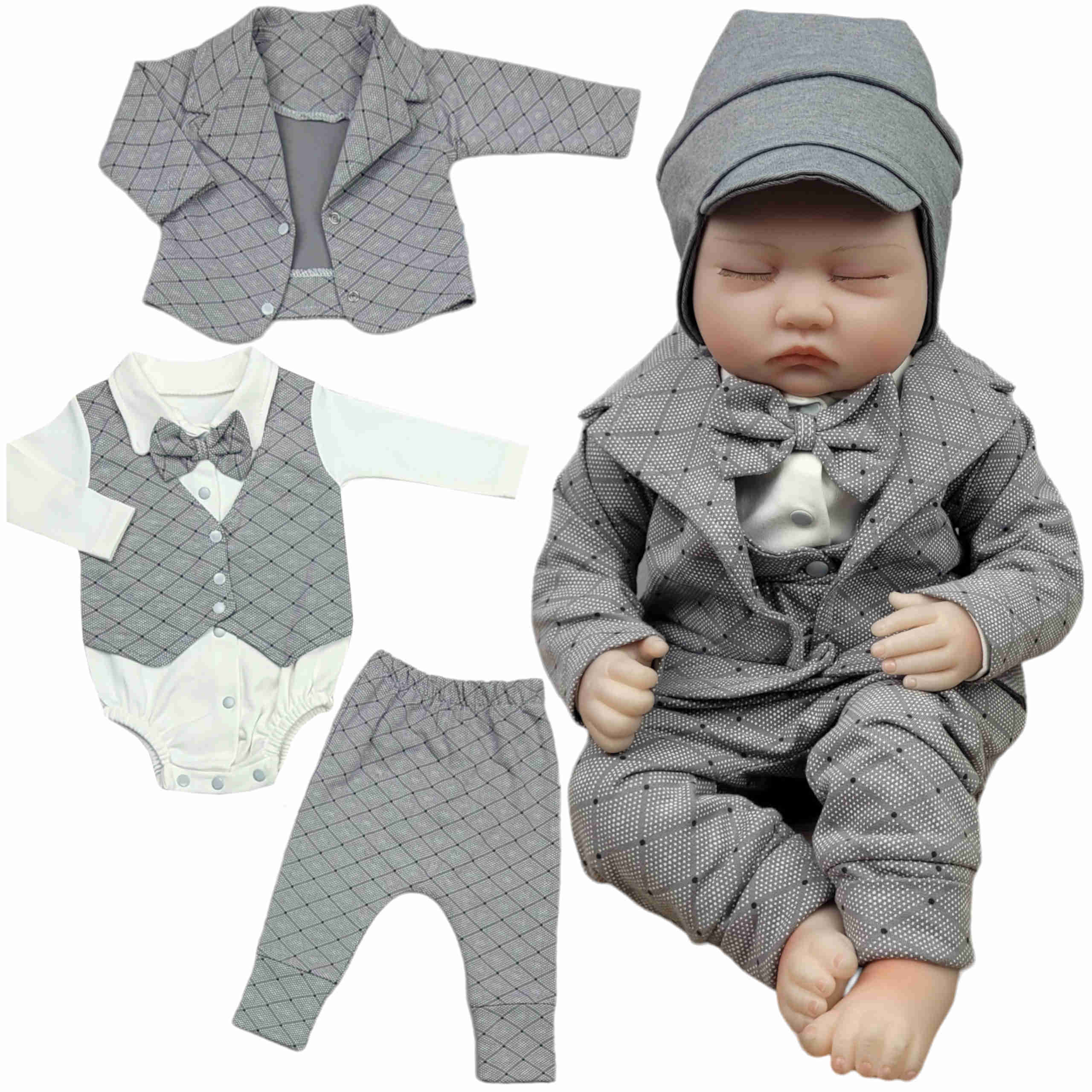 Garnitur niemowlęcy na chrzest 62/74 cm szary - Romby