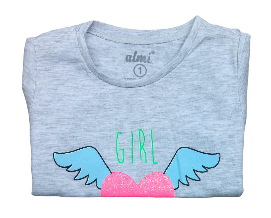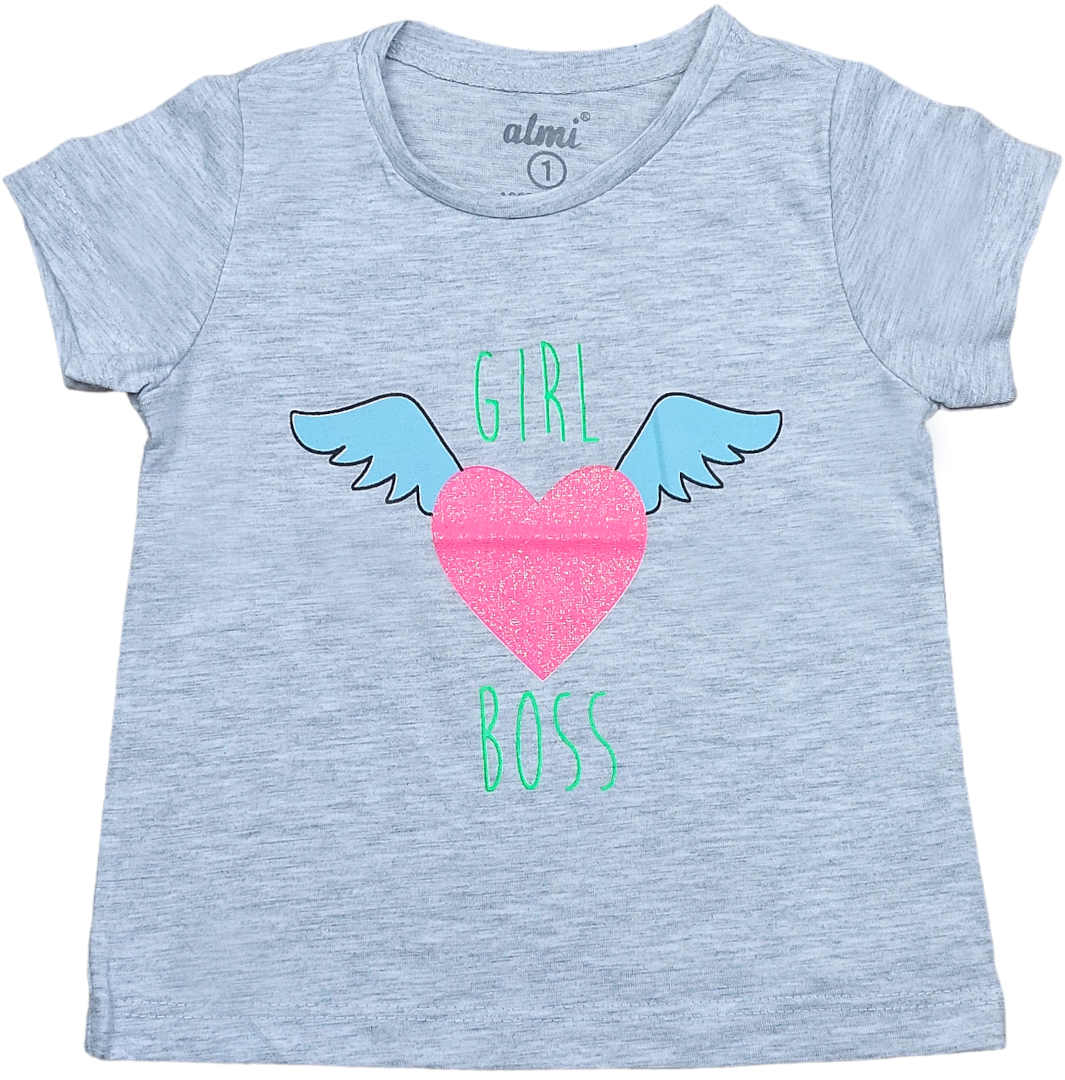 KOSZULKA DZIEWCZĘCA KRÓTKI RĘKAW SZARA - GIRL BOSS