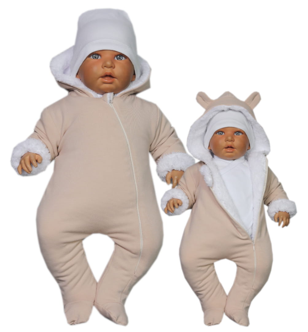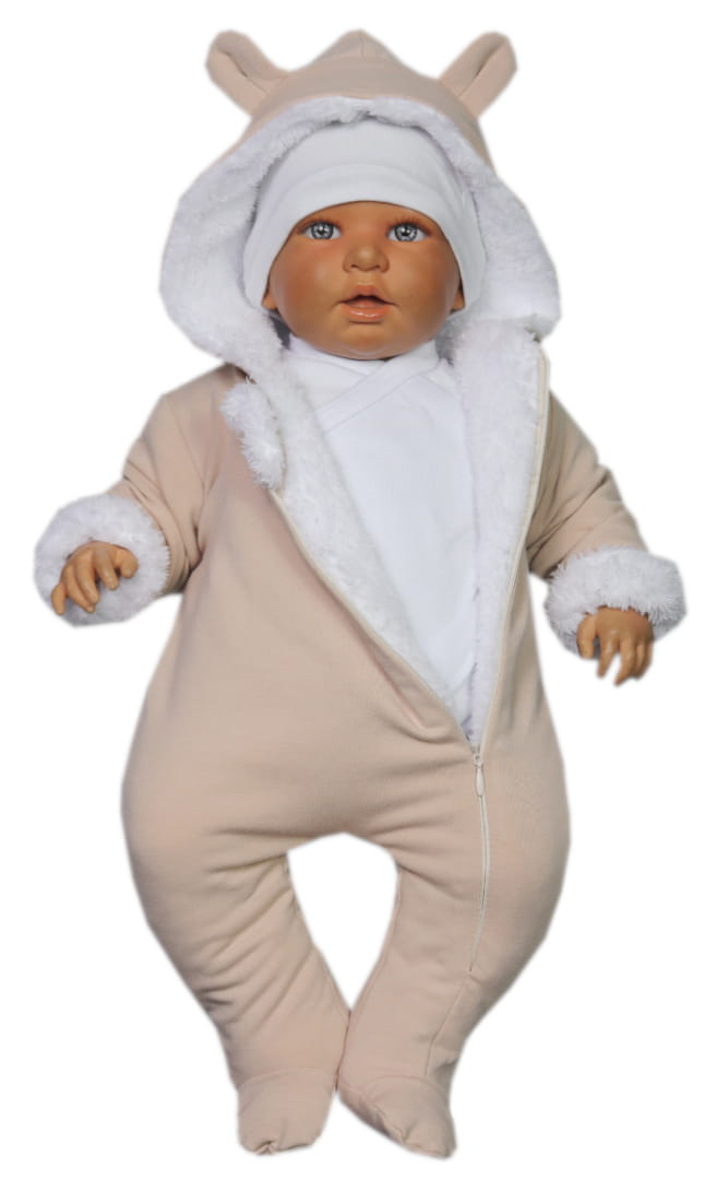 Kombinezon pajac na futerku - Beżowy