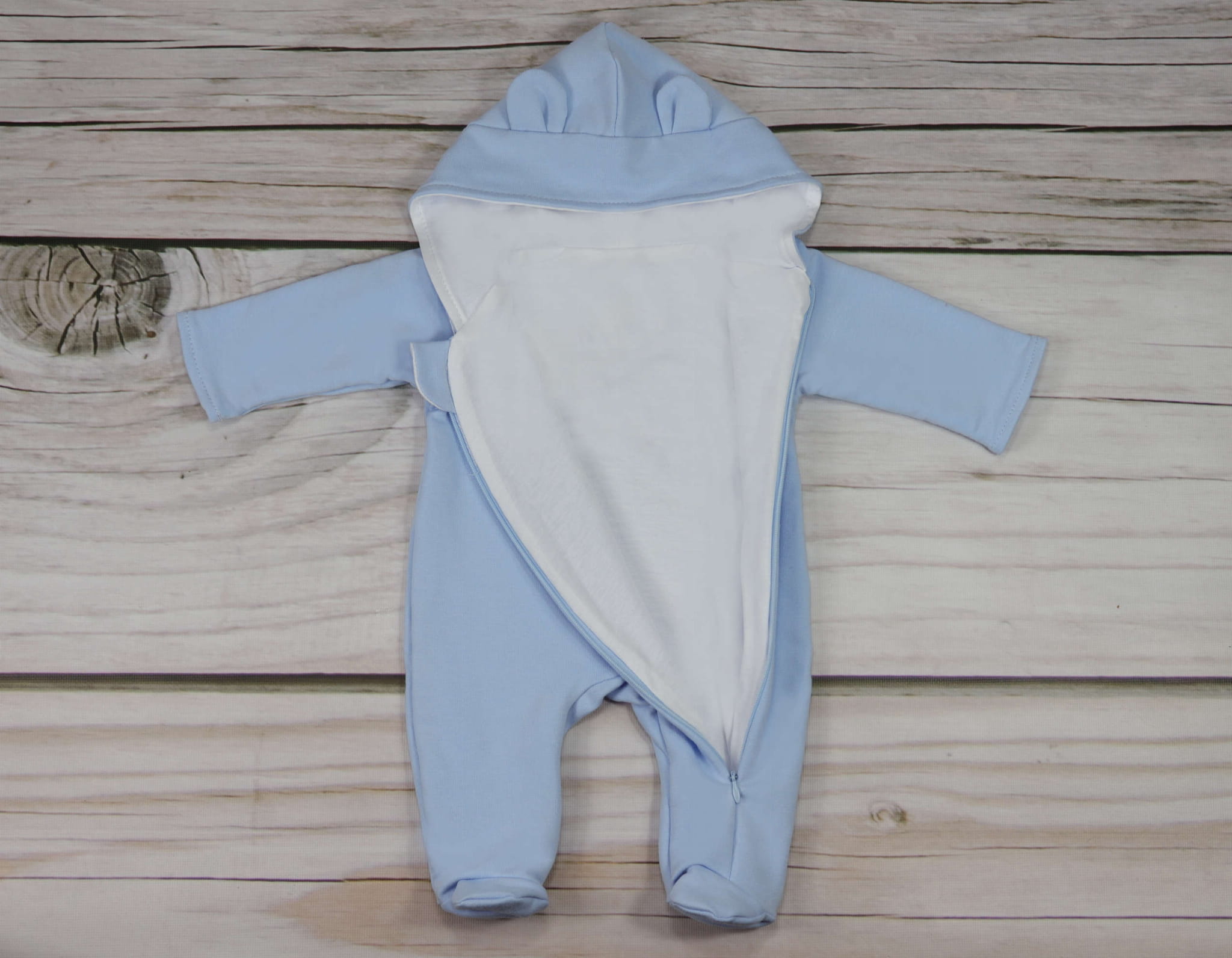 Kombinezon posiada delikatną białą podszewką dlatego świetnie nada się na wyjścia na spacery, a także po domu na każdą porę roku. To absolutna podstawa niemowlęcej wyprawki.