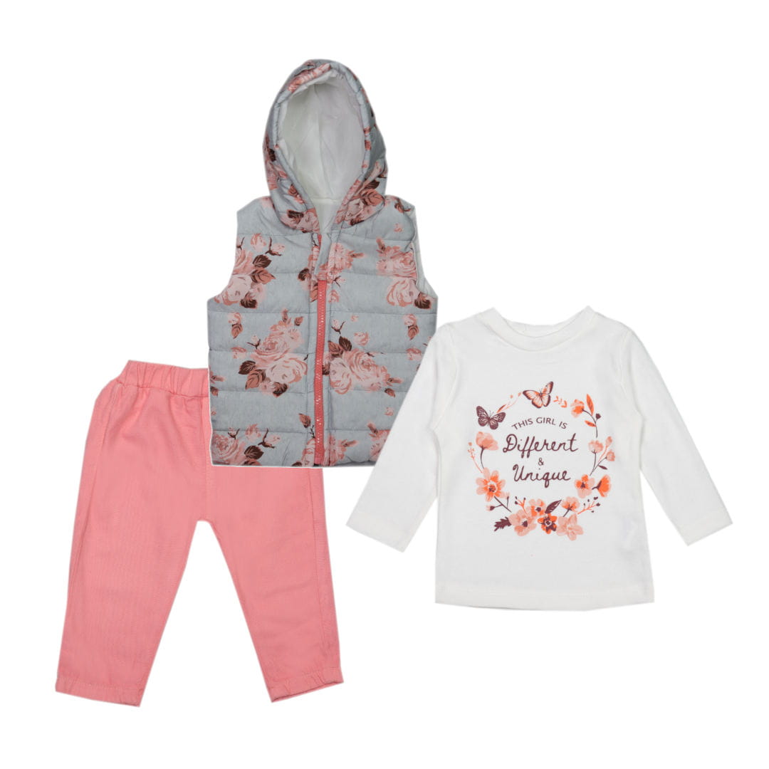 Komplet dresowy 3 częściowy + bezrękawnik - różowe kwiaty