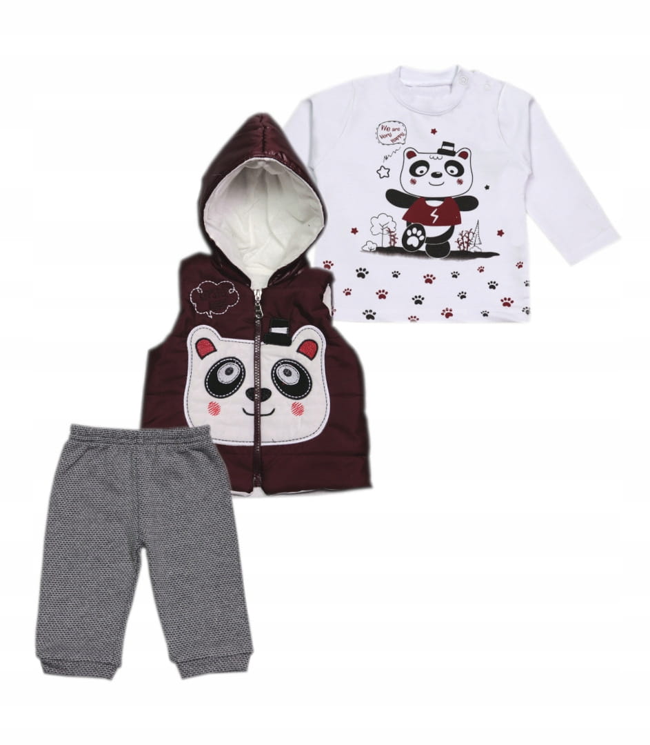 Komplet dresowy + bezrękawnik 74/80 cm - Panda brązowa