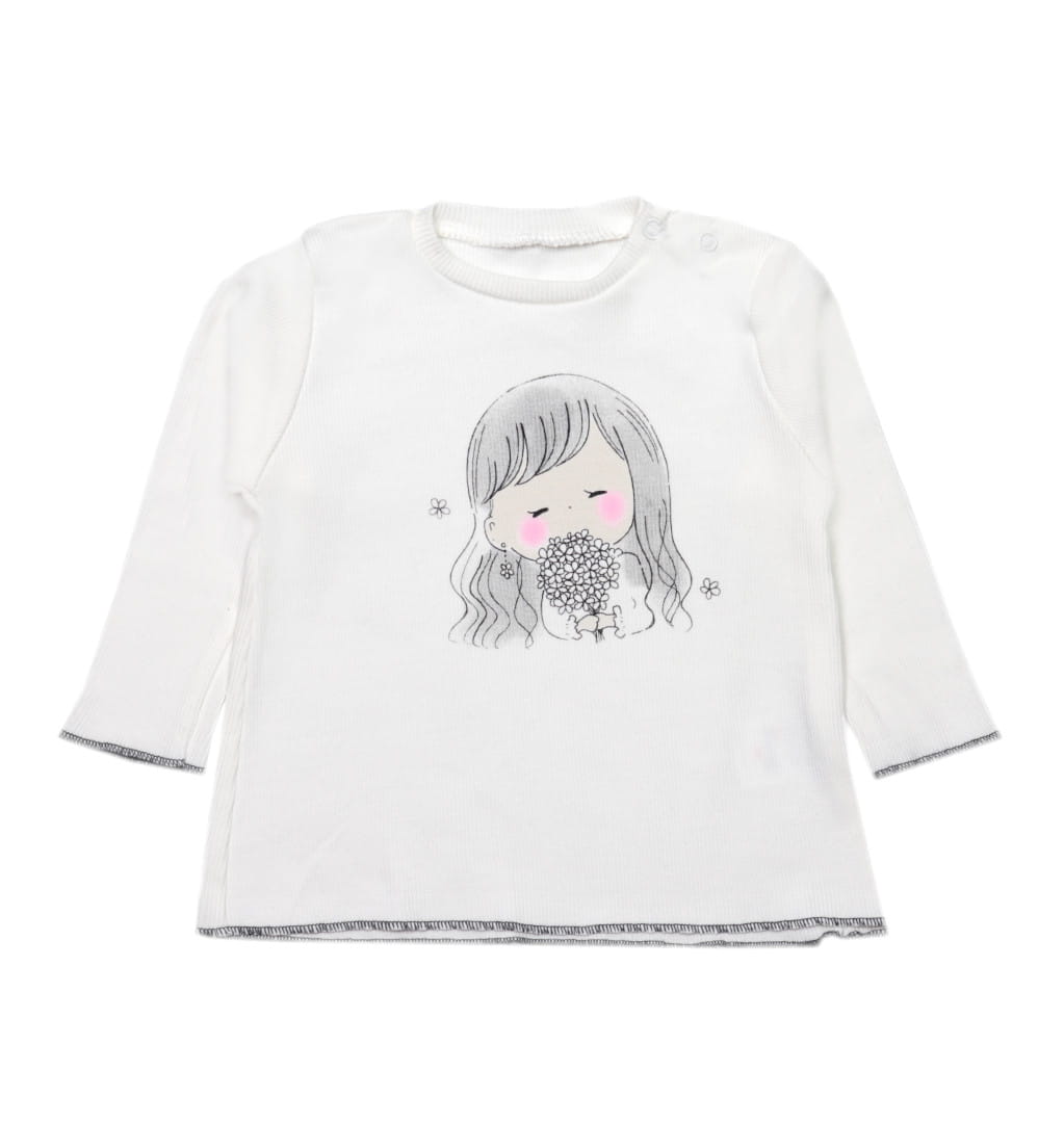 - Biała bluzeczka z nadrukiem dziewczynki