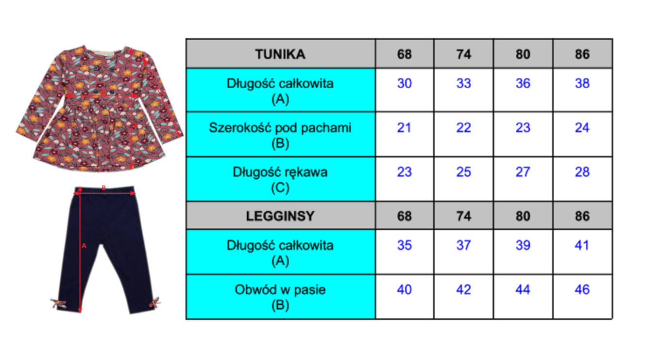 Komplet dziewczęcy tunika i legginsy 68-86 - Kwiaty