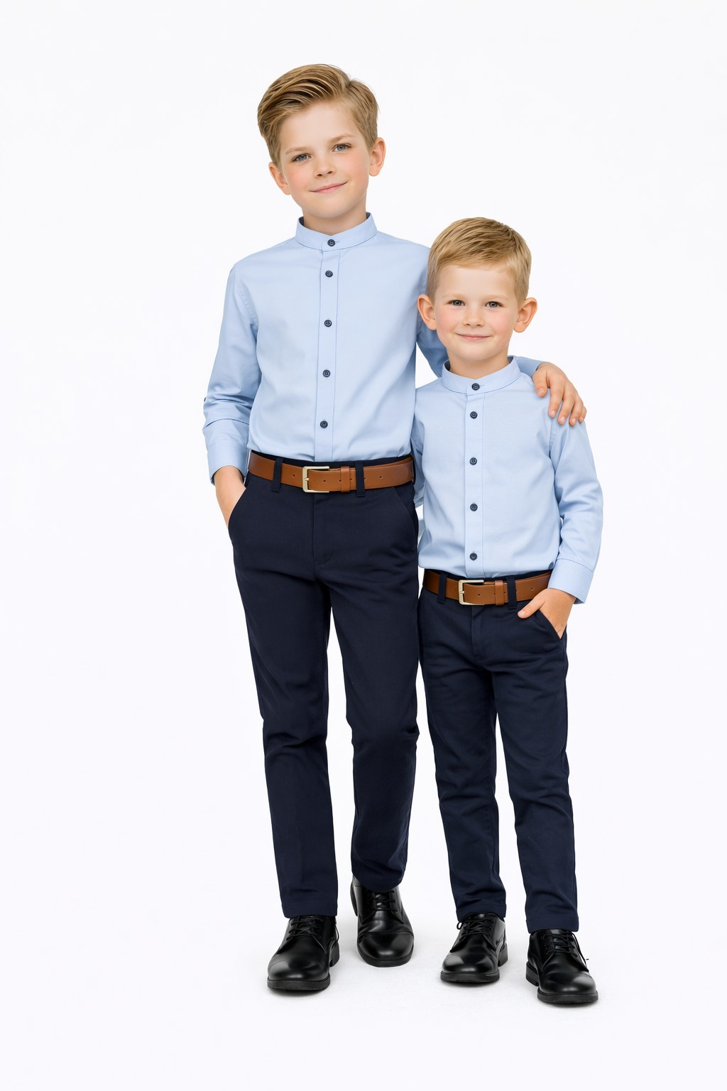 To świetne rozwiązanie szczególnie dla rodzin, które mają więcej niż jednego syna – można ubrać braci w identyczne, eleganckie zestawy, co wygląda niezwykle stylowo podczas rodzinnych uroczystości, świąt czy ważnych wydarzeń.