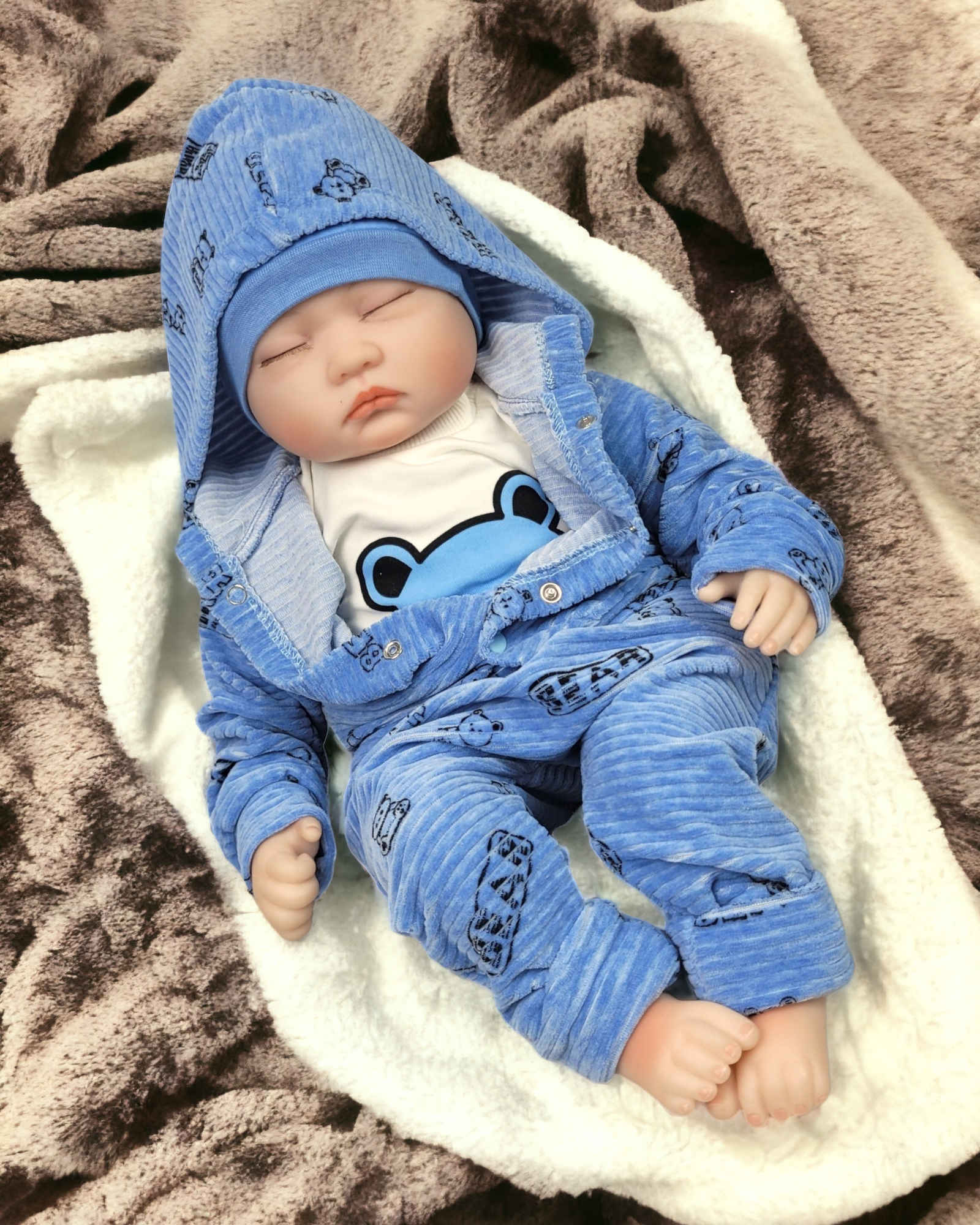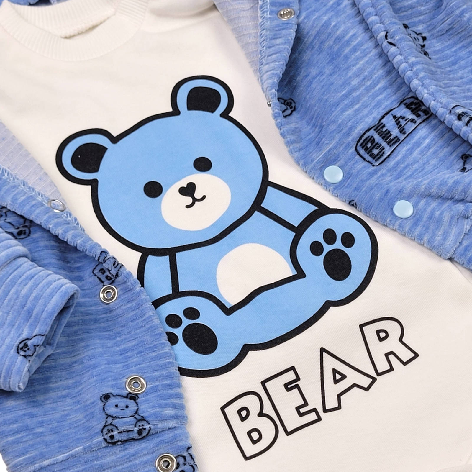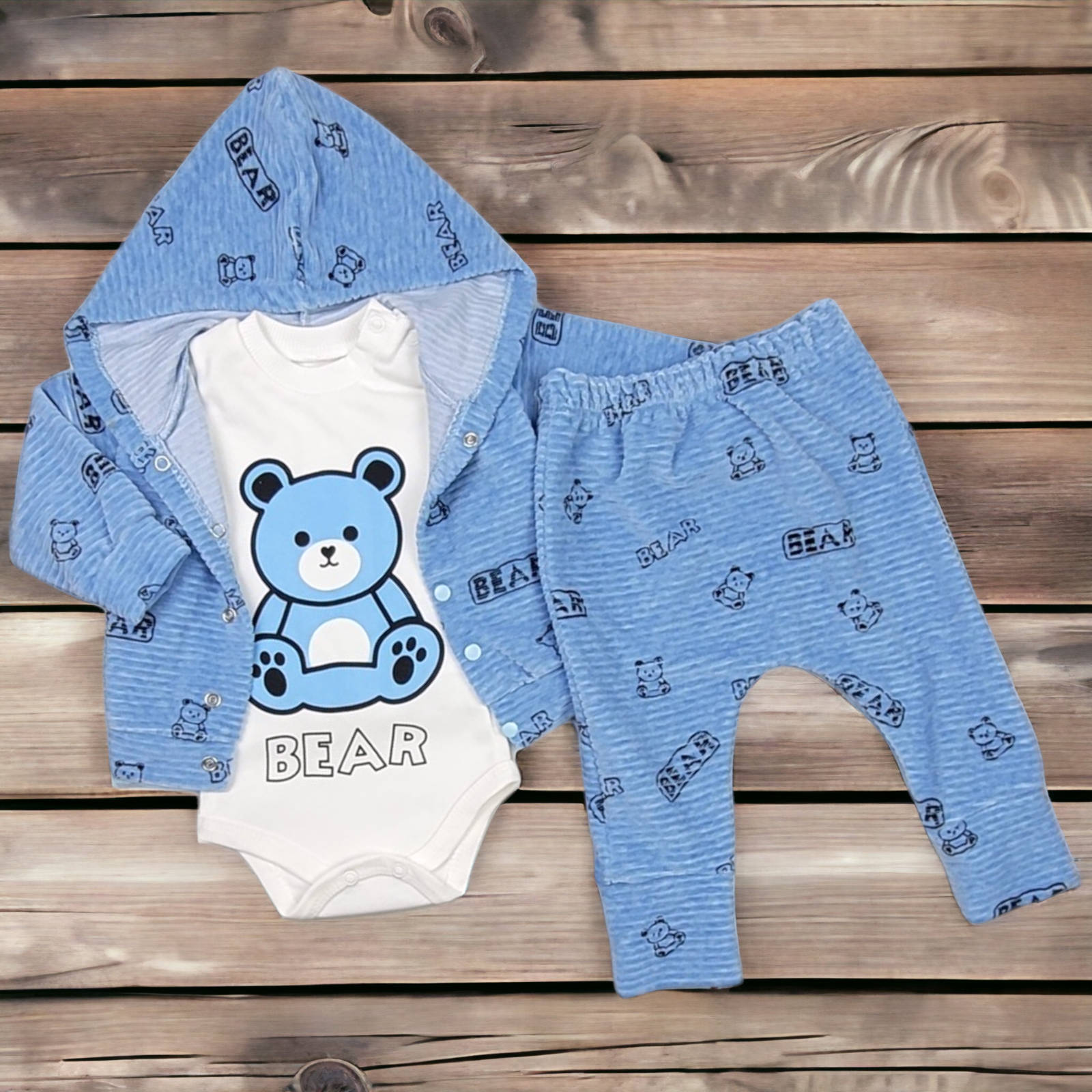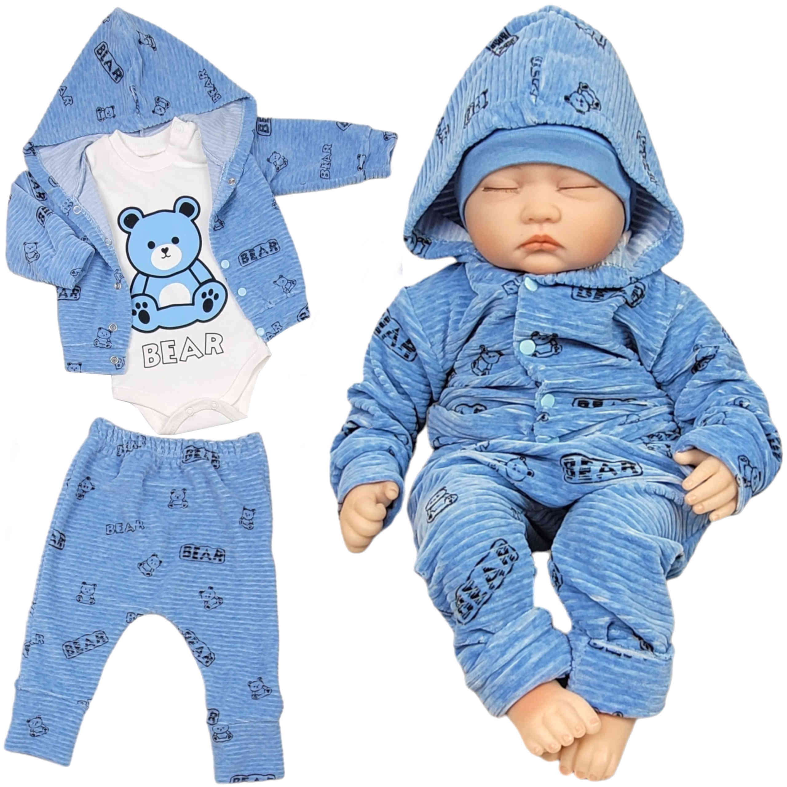 Komplet niemowlęcy welurowy 3 częściowy 62/74 cm - Miś