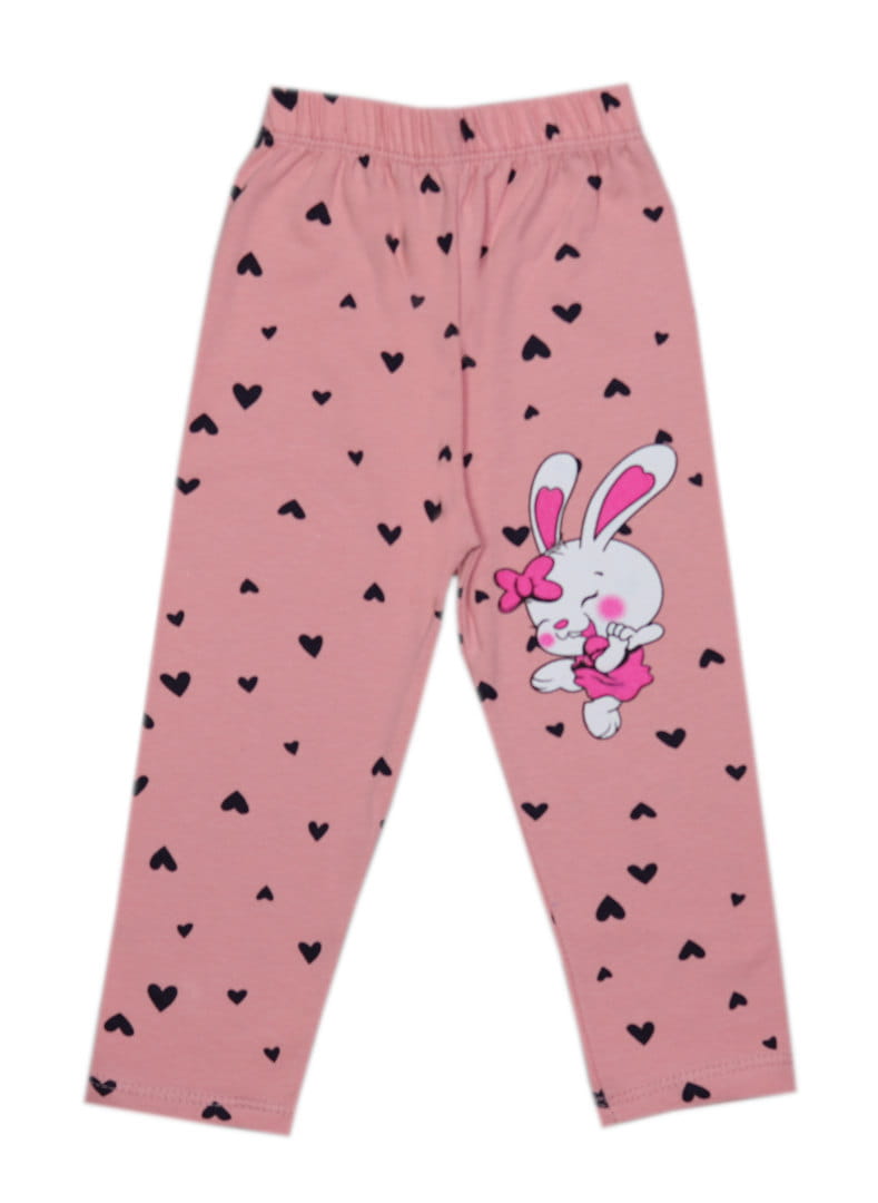 Legginsy dziewczęce bawełniane pudrowe- króliczek