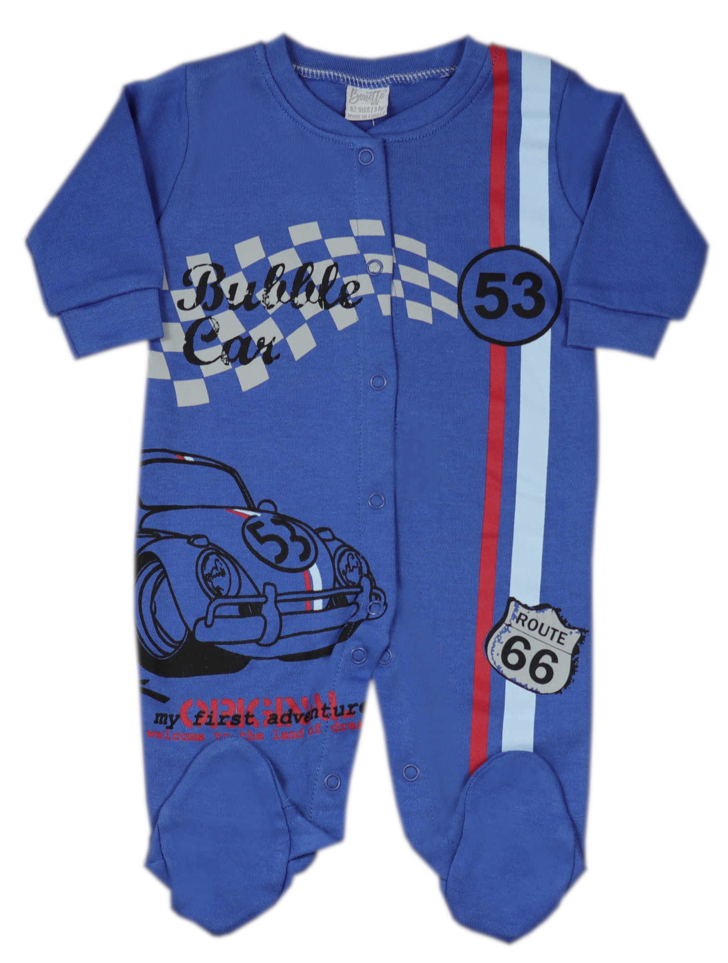 Pajacyk rozpinany niemowlęcy niebieski - wyścigówka