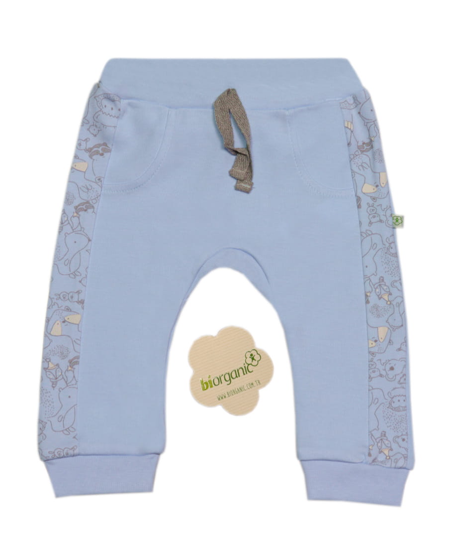 Spodnie dresowe niemowlęce Biorganic niebieskie - Leśne zwierzątka
