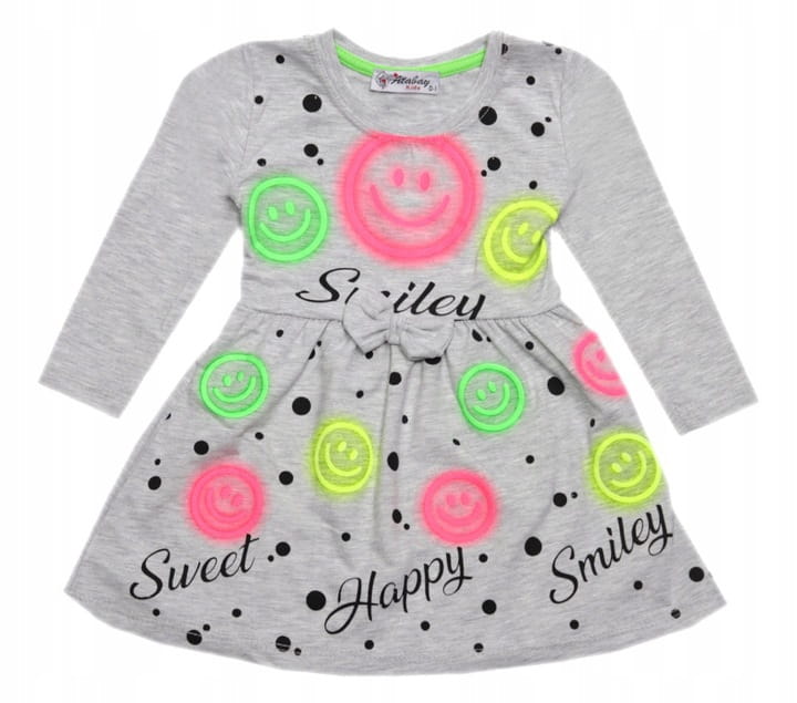 Sukienka dziewczęca bawełniana 80/98 cm neonowa - Buźki